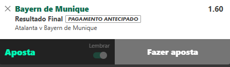 Por mais que o Atalanta seja muito bom em casa, é um jogo nitidamente bom para o Bayern vencer, até pela fase espetacular vivida pelo time de Kompany.